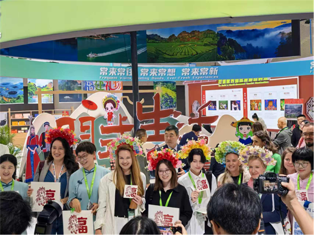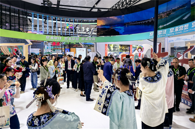 表演展示区成为展会的一大亮点。福建剪纸国家级非遗传承人周冬梅现场展示剪纸技艺;闽南特色民俗簪花围蟳埔女习俗市级非遗传承人黄丽泳让世界各地朋友们沉浸式体验了“头顶花园”的浪漫;福建木偶戏连城提线木偶第五代传人李绅凭借“线线连偶,指掌传神”的高超技艺赢得现场观众的阵阵掌声;茶艺展示让观众在氤氲茶香中感受福建茶文化的宁静与雅致。“周末戏相逢”也首次走进本届旅交会现场,通过精彩的文艺活动展演及互动,吸引众多参观者参与体验,也向全球展现了闽派优质的文化文艺资源。