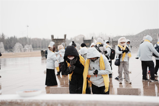 行程中,李婉瑄随团先后参访了开漳历史纪念馆、黄帝故里、郑州黄河文化公园、河南省博物院、戏剧幻城及清明上河园等文化地标。最令她动容的,是在郑州黄河文化公园与营员们邂逅2025年河南冬季的初雪,“看着飘雪的母亲河,我仿佛看到多年前外公也曾凝望同样的景色。他在台湾的那些岁月里,一定常常想起故乡的雪、故乡的味道。”