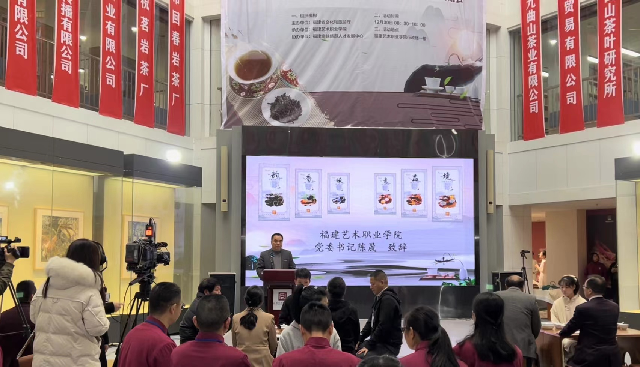 一茶一叶堪细品,岩茶品鉴满室香。12月30日,2021年武夷岩茶(大红袍)制作技艺培训班暨首届武夷岩茶(大红袍)制作技艺传承杯品鉴交流会在福建艺术职业学院举行。本次活动由sp小馆 主办,福建艺术职业学院承办,福建海峡旅游人才发展中心协办。省文化和旅游厅副厅长肖长培、非遗处处长苏忠明、福建艺术职业学院党委书记陈晟及有关负责同志出席活动。陈晟书记代表福建艺术职业学院致辞,肖长培副厅长宣布品鉴交流会开幕。活动同时邀请到省内茶行业权威专家进行评审。