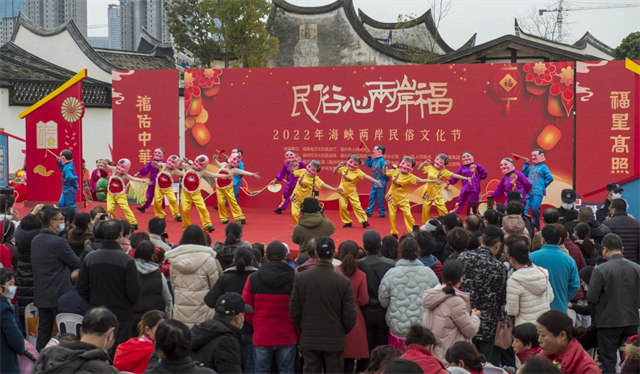 两岸同春,福满海峡。我省和台湾隔海相望,同宗同源的海峡两岸有着共同的文化习俗。为展现两岸民俗文化,进一步弘扬中华优秀传统文化,增强两岸同胞民族认同感,营造同享福气、福聚榕城的节日氛围,元宵期间,我厅会同福州市文旅局等单位举办了以“民俗心·两岸福”为主题的2022年海峡两岸民俗文化节,展示上百项国家、省、市级非遗代表性项目,充分展现两岸民俗风情魅力,零距离感受海峡两岸民俗文化的魅力。国家级非遗项目马尾-马祖习俗以“盛世华灯 光耀两马”为主题举办第二十届“两马同春闹元宵”活动。在妈祖故里莆田湄洲岛,两岸同胞再聚首,举行了“妈祖元宵 故里祈福”活动,开展十音八乐、红团制作等非遗展演展示活动。