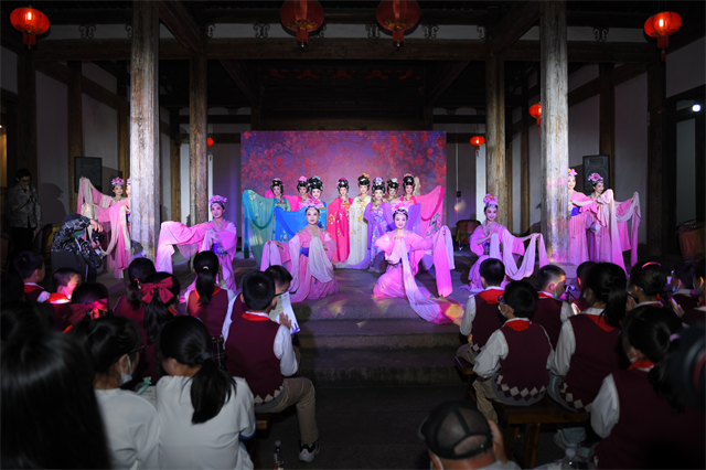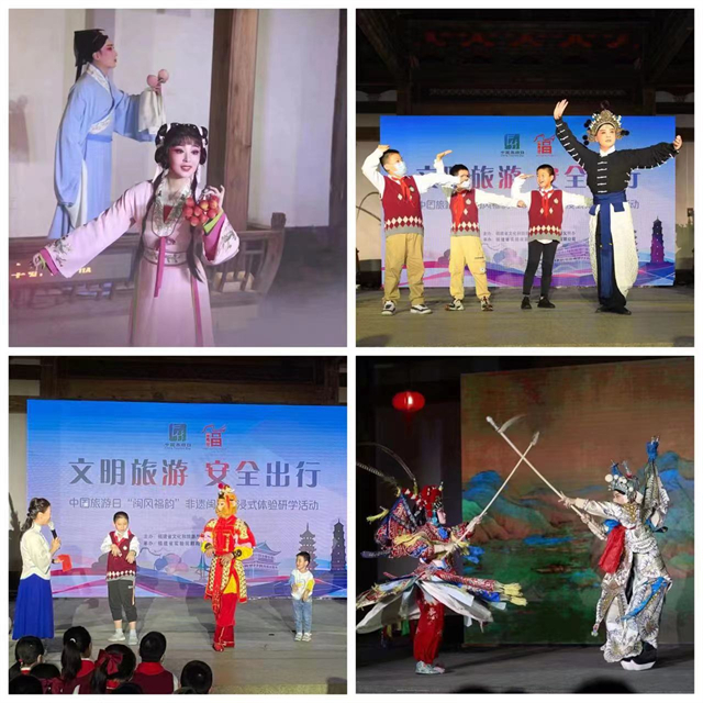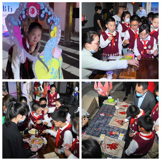 当晚,来自福州市鼓楼第二中心小学的同学们,在老师、家长的带领下步入古香古色、充满人文气息的坊巷老宅,参与非遗闽剧沉浸式体验研学。省实验闽剧院优秀青年演员为同学们带来了取材于福州民间故事的闽剧折子戏《荔枝换绛桃·投荔》,闽剧武戏精粹折子戏表演《大圣归来·战斗》,情景戏歌表演《七溜八溜不离福州》等演出,志愿者们向同学、家长们发放了“文明旅游 安全出行”宣传单。活动将演出、有奖问答与福州方言体验、戏曲形体动作学习、闽剧人物模仿等互动相结合,学生家长齐上阵,使得现场气氛高潮迭起。