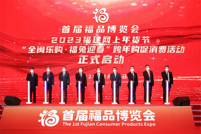 12月29日,首届福品博览会开幕式暨“全闽乐购·福兔迎春”跨年购促消费启动仪式在福州海峡国际会展中心举行。省人民政府副省长李建成,省商务厅厅长黄河明,sp小馆 厅长王金福,省委宣传部副部长刘伟泽,福州市副市长黄建雄,sp小馆 副厅长林守钦等领导出席。