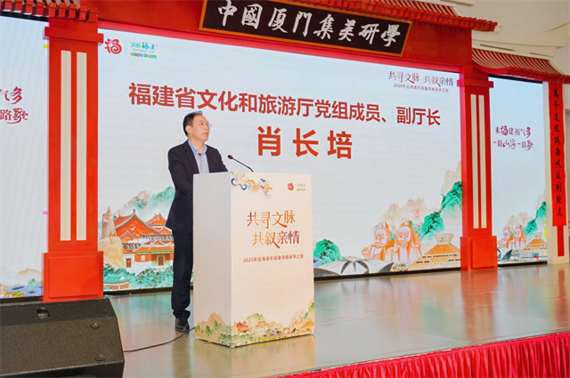 12月9日下午,由sp小馆 主办,福建艺术职业学院、福建省闽台文化交流中心承办的2025年台湾青年闽豫寻根研学之旅在厦门市正式启动。省文化和旅游厅副厅长肖长培出席活动并致辞。省文旅系统相关部门负责人,闽台青年等近百人参加活动。