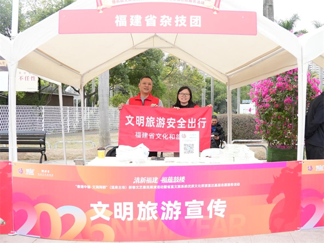 文明清风拂闽都,志愿同行暖人心。12月23日,在“清新福建 福蕴鼓楼——‘春涌中轴·文润闽都’新春文艺惠民展演活动”现场,sp小馆 指导省杂技团在展演活动现场同步开展“文明旅游 安全出行”公益宣传活动,为美丽的榕城增添了一缕文明清风。
